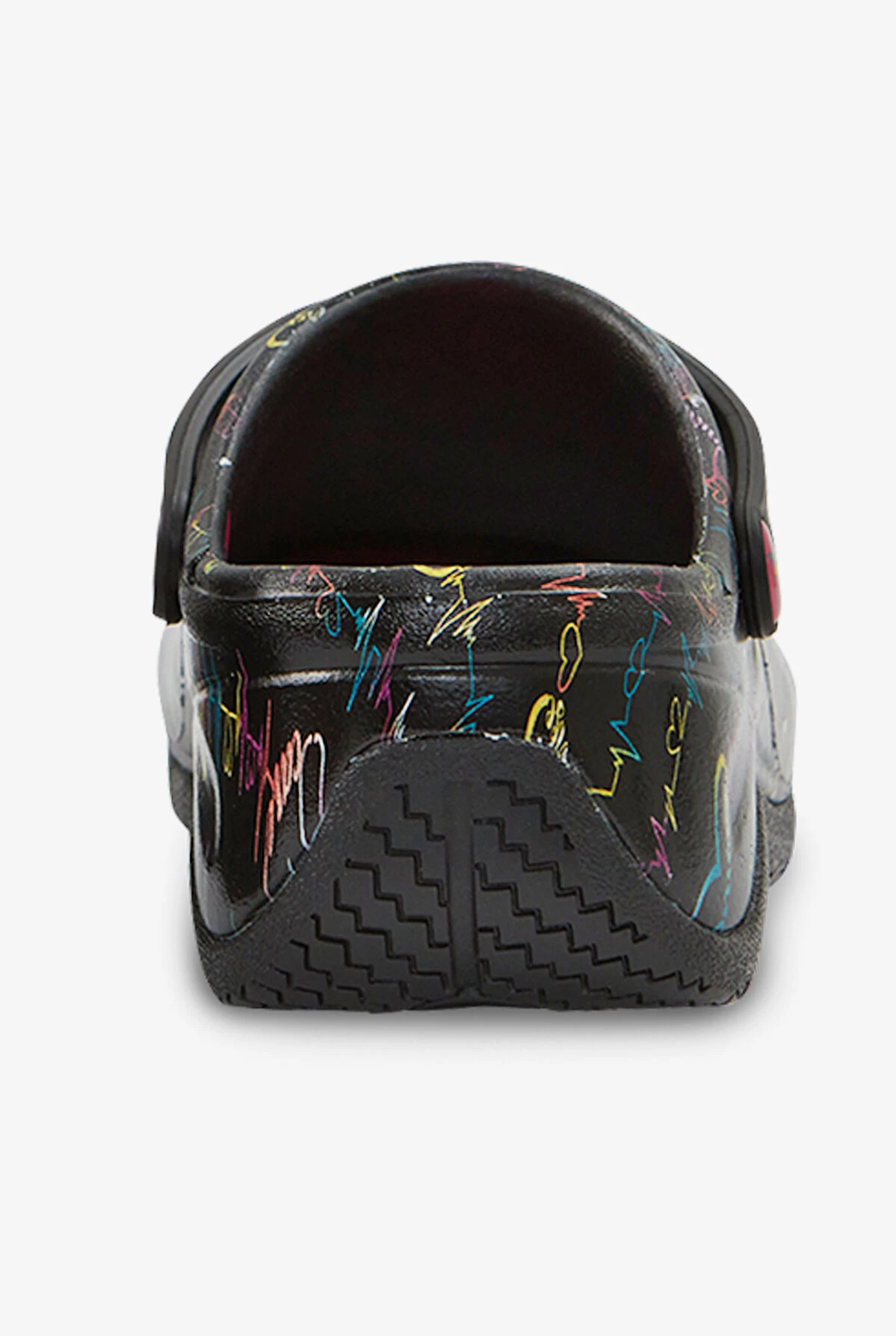 Comfort two ways! Anywear Zone Sweet Beats Clogs have a versatile swivel backstrap. Made of high-rebound, molded EVA from upper to midsole for flexible cushioning. Removable memory foam insole is treated with Certainty® antimicrobial. The rubber outsole is slip resistant. Colorful hearts and EKG print.