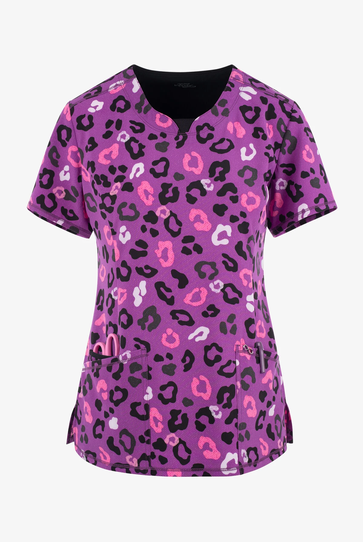 - 2 front angled patch pockets with pen slots