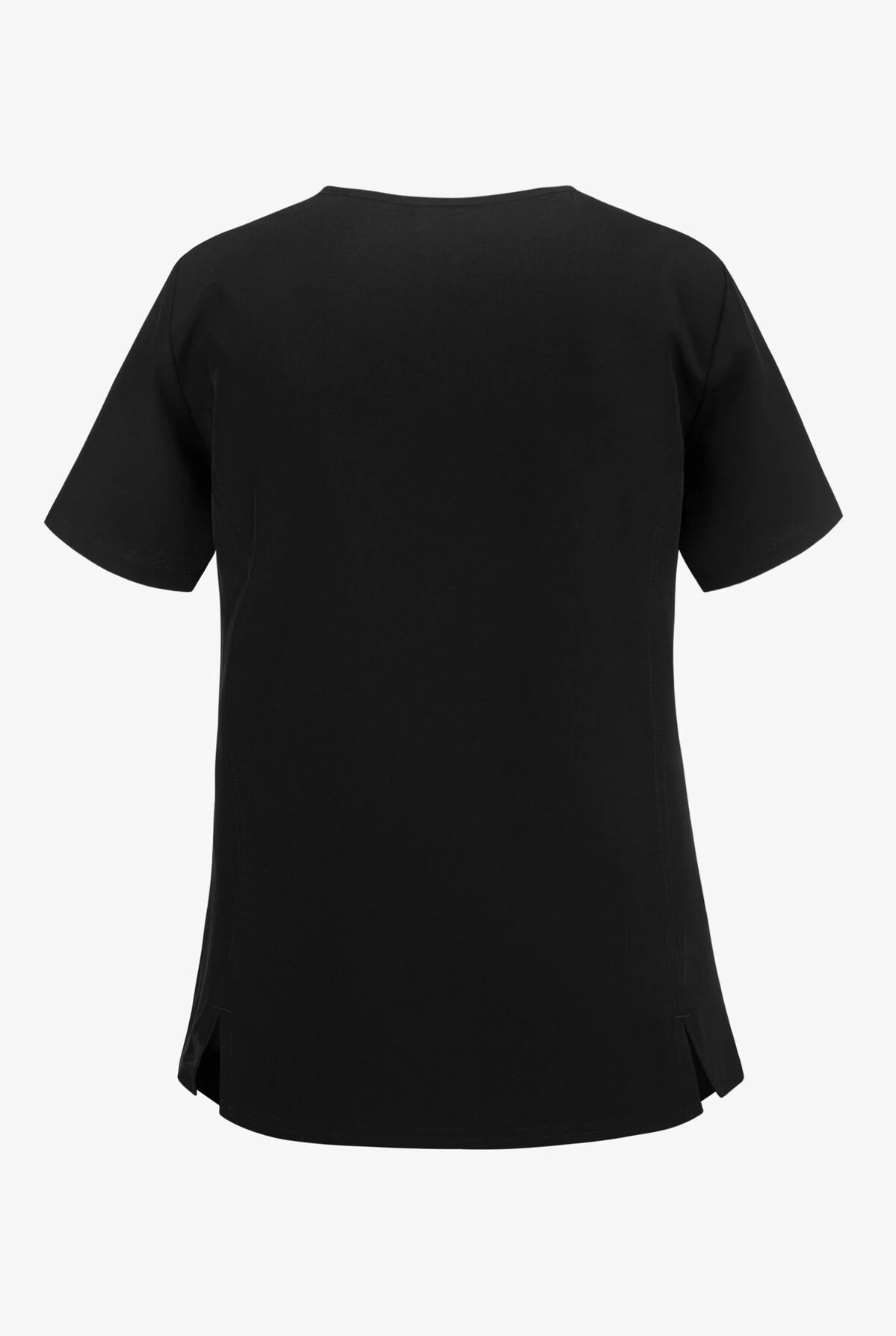 The Cherokee Tooniforms TF627 TOGB Trolls V-Neck Gimme a Beat Print Scrub Top features Princess Poppy from Dreamworks’ “Trolls”. It has Black trim along the neckline and one front kangaroo pocket, along with back princess seams and back slits. The fabric content is 95/5 poly/spandex.