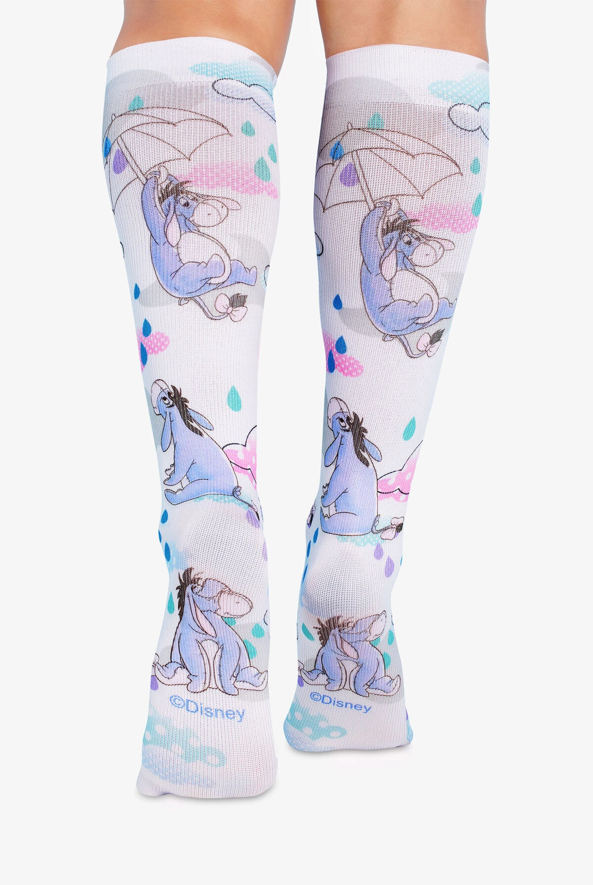 - Eeyore from Disney’s “Winnie the Pooh” uncharacteristically optimistic, looking up at the rain clouds waiting for the sun on a white background
