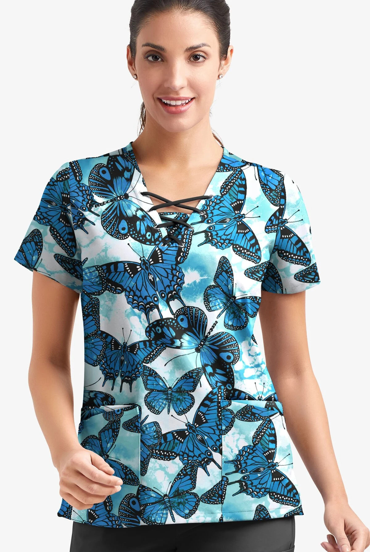 Bored by your current scrub top collection? Our lace-up V-neck style will break the monotony with its dynamic laced front (complete with modesty panel), modern fit and silky-soft feel.