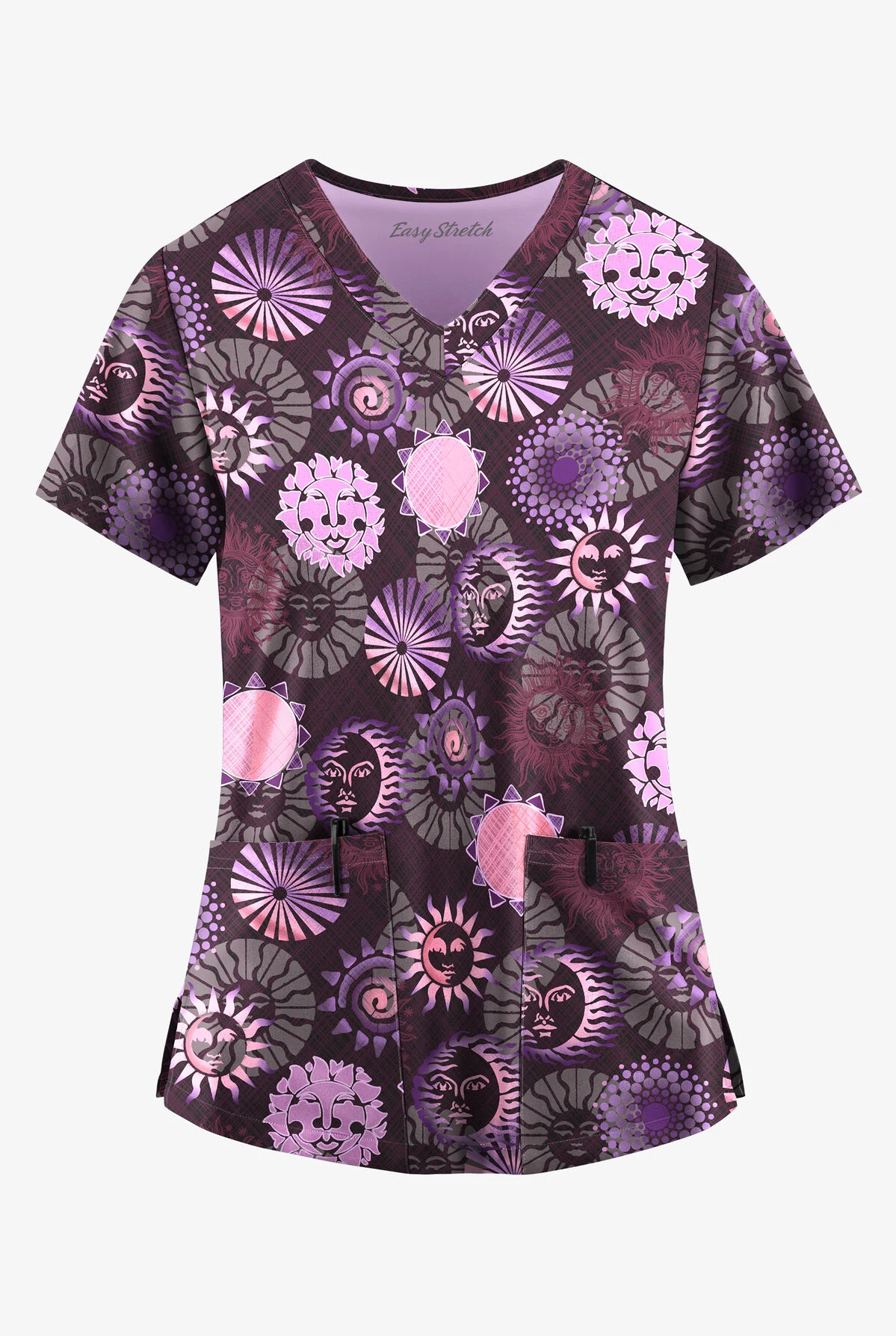 The v neckline is classic for a reason—it’s almost universally flattering. Other flattering things about this top? Back vents and side vents. They add shape and ease, respectively.. Are they flowers? Stars? This black-ased print is 100% in the eye of the beholder.