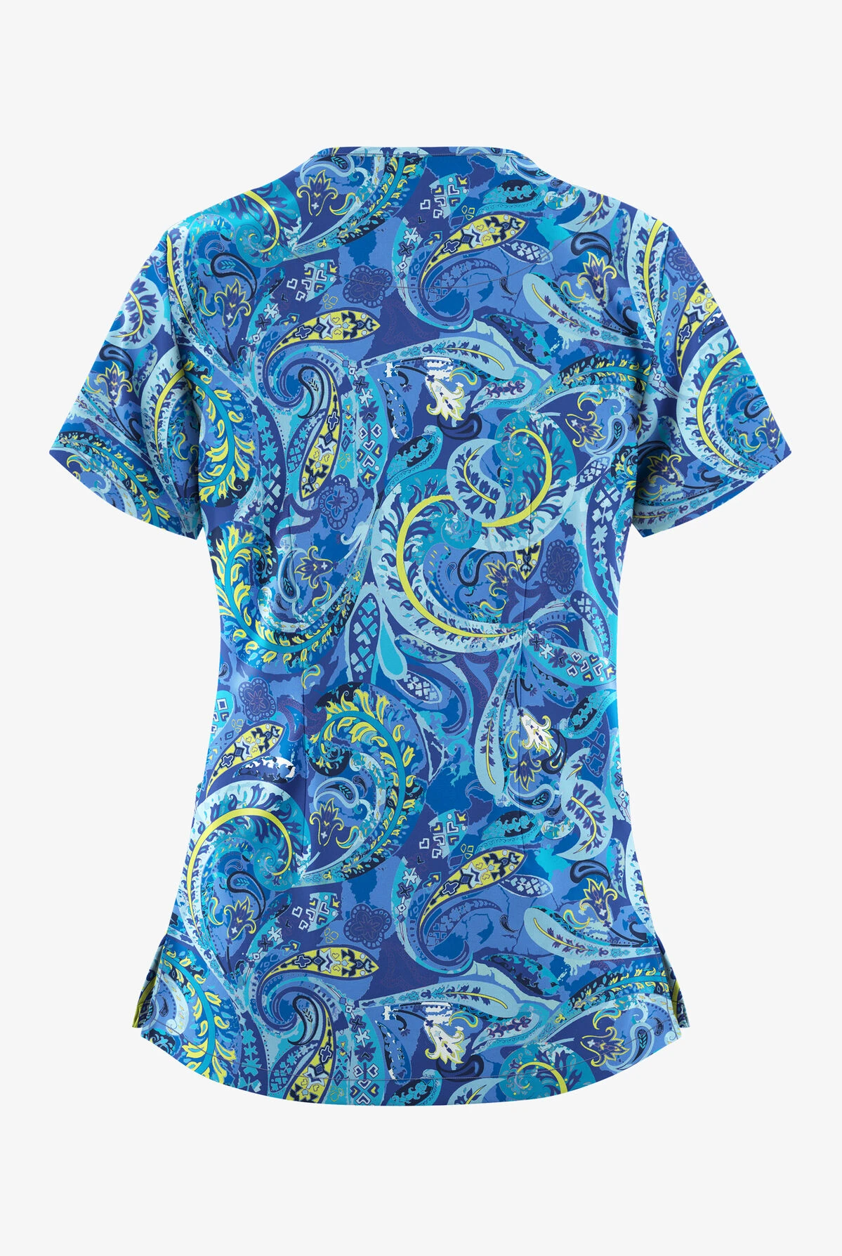 The Easy Stretch by Butter-Soft™ charming swirls fresh lime women’s 2-pocket v-neck print scrub top is a great choice for any nursing wardrobe! This top has a contemporary fit with flattering ‘v’ neckline style. For storage it has two roomy front pockets and side vents for greater range of motion. It has back darts on garment for flattering fit. Fabric content is 93/7 poly/spandex.