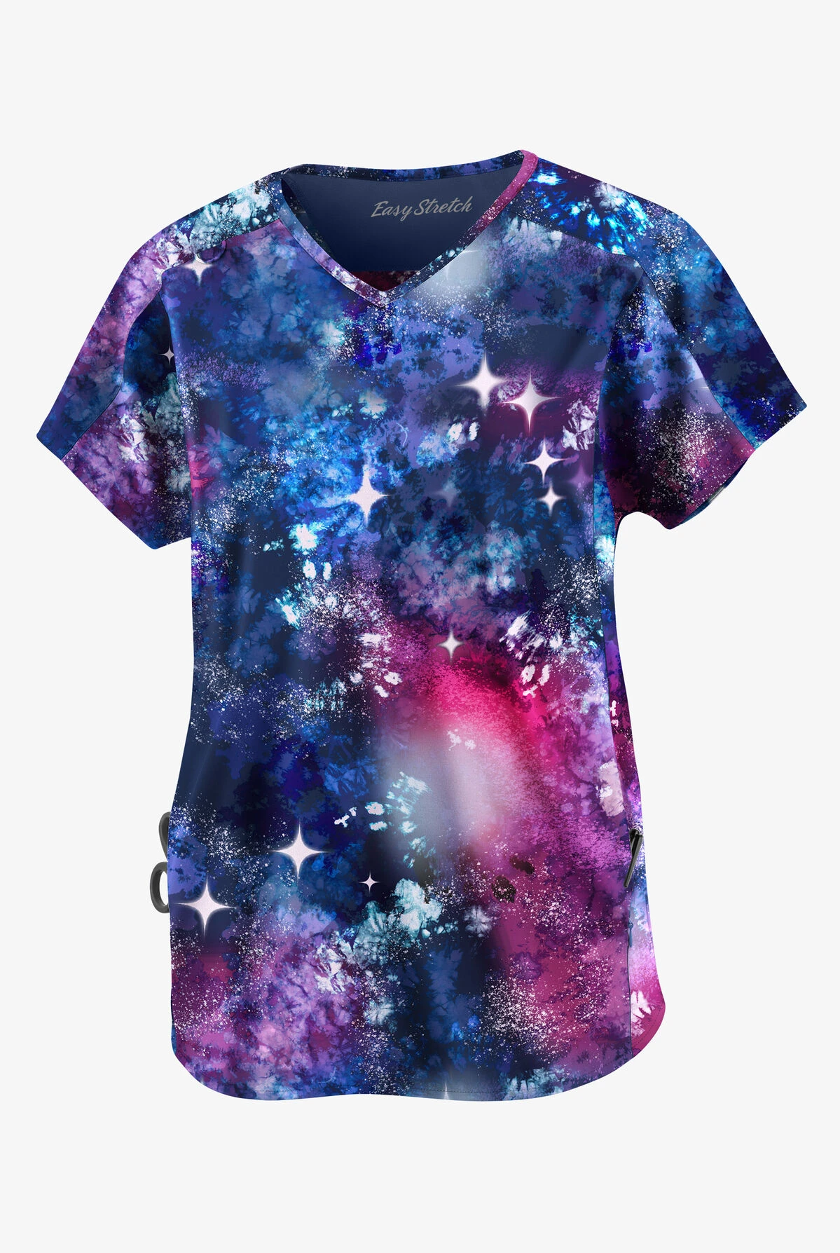 You may not have heard of a dolman sleeve, but you’ll love the comfort. No seam at the armhole means nothing rubs you wrong. You’ll love the details too – including a relaxed fit and sleek onseam zip pockets. The Easy Stretch by Butter-Soft™ collection is designed for a modern look and easy fit. 4-way stretch performance fabric keeps you comfortable all shift long. Stars and nebulae … this print is like wearing the night sky. So pretty.