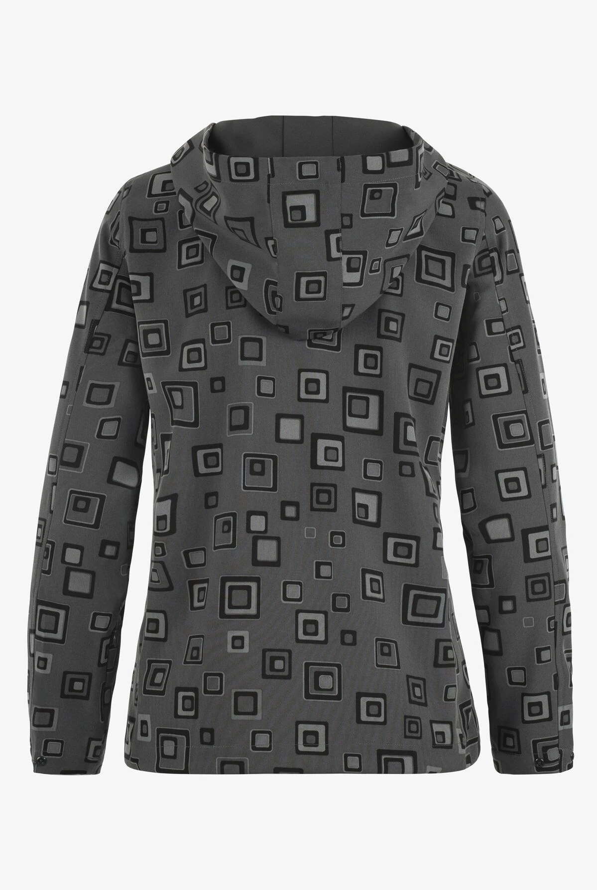 The Easy Stretch by Butter-Soft™ floating tiles pewter women’s 5-pocket zip-font print scrub hoodie features a modern fit with front silver zipper closure. For storage, it has 5 pockets in total, 2 roomy front pockets, right side has a concealed power-mesh pocket. It has a concealed zipper pocket on wearers left sleeve and an interior pocket. The hoodie has a removable drawcord at hood and hem and flattering two-piece sleeve for better fit. It also has an id loop at front right shoulder. Made of 93/7 poly/spandex.