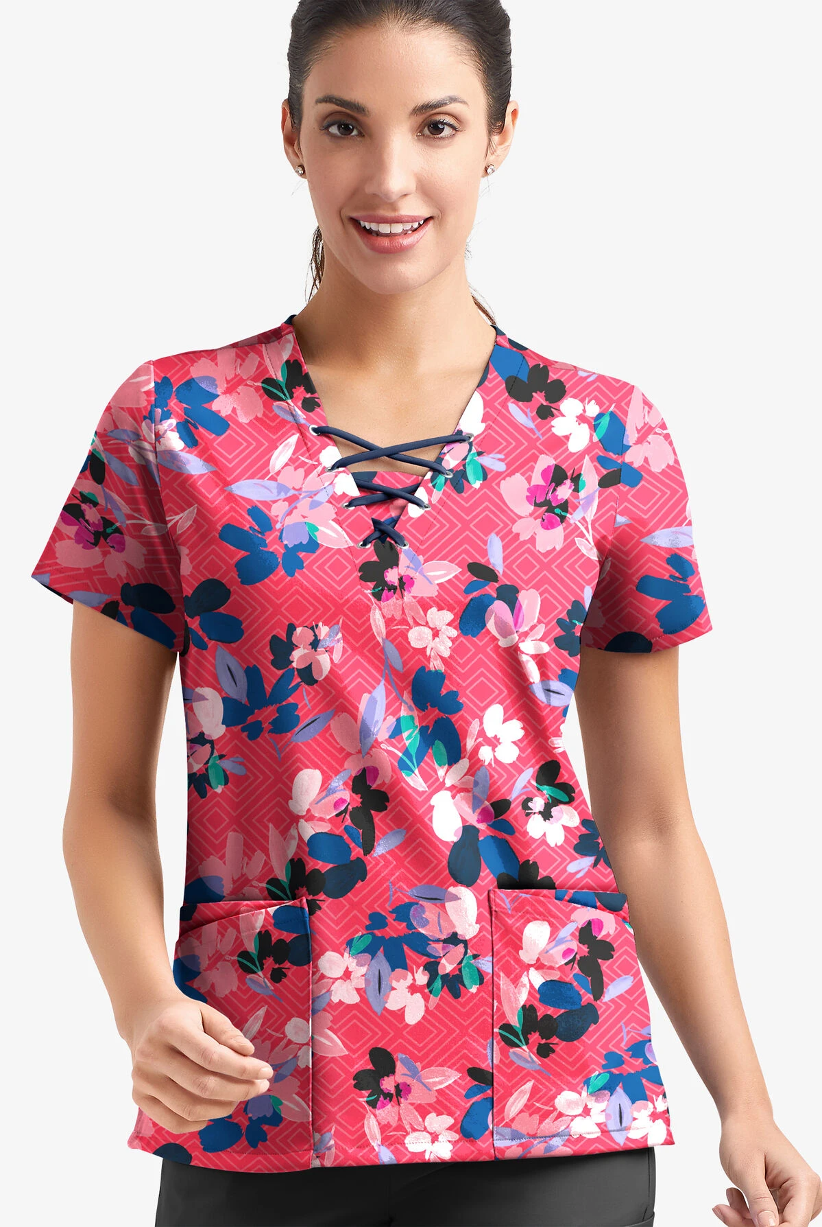 Bored by your current scrub top collection? Our lace-up V-neck style will break the monotony with its dynamic laced front (complete with modesty panel), modern fit and silky-soft feel.