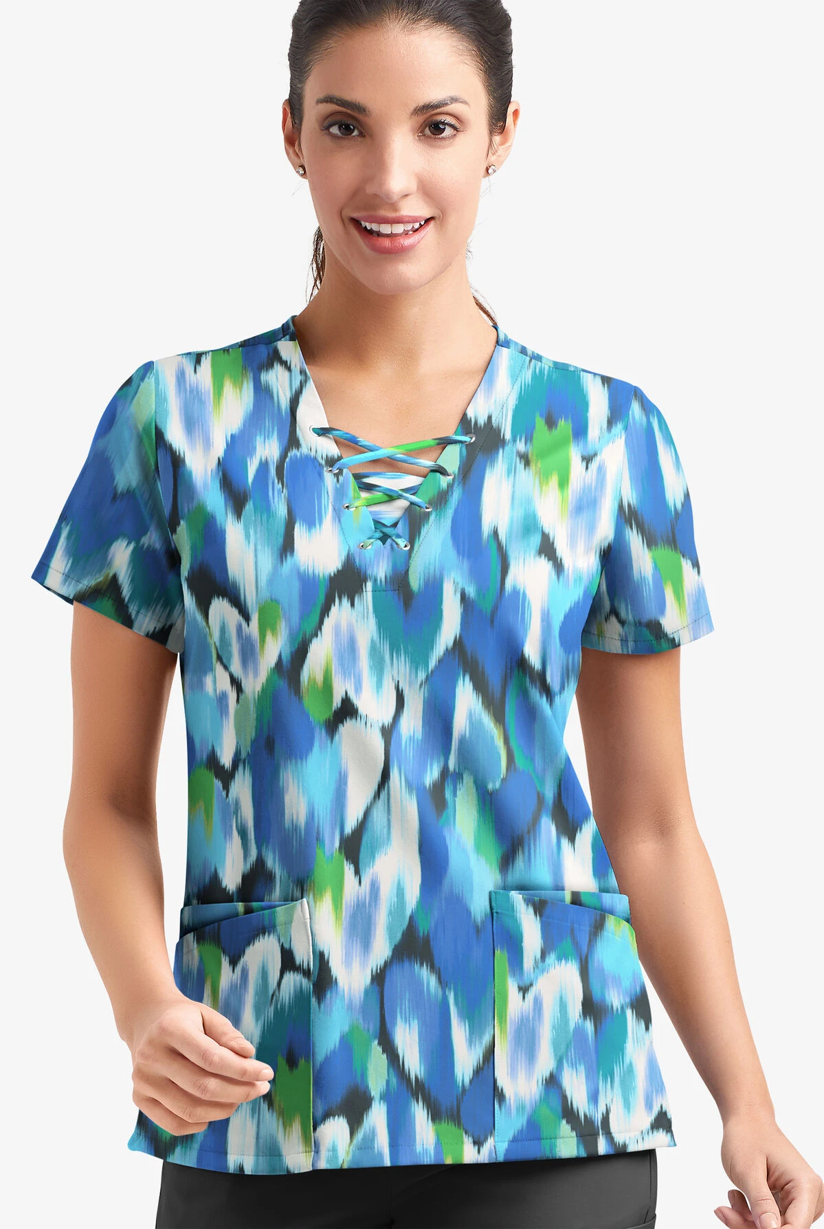 Bored by your current scrub top collection? Our lace-up V-neck style will break the monotony with its dynamic laced front (complete with modesty panel), modern fit and silky-soft feel.
