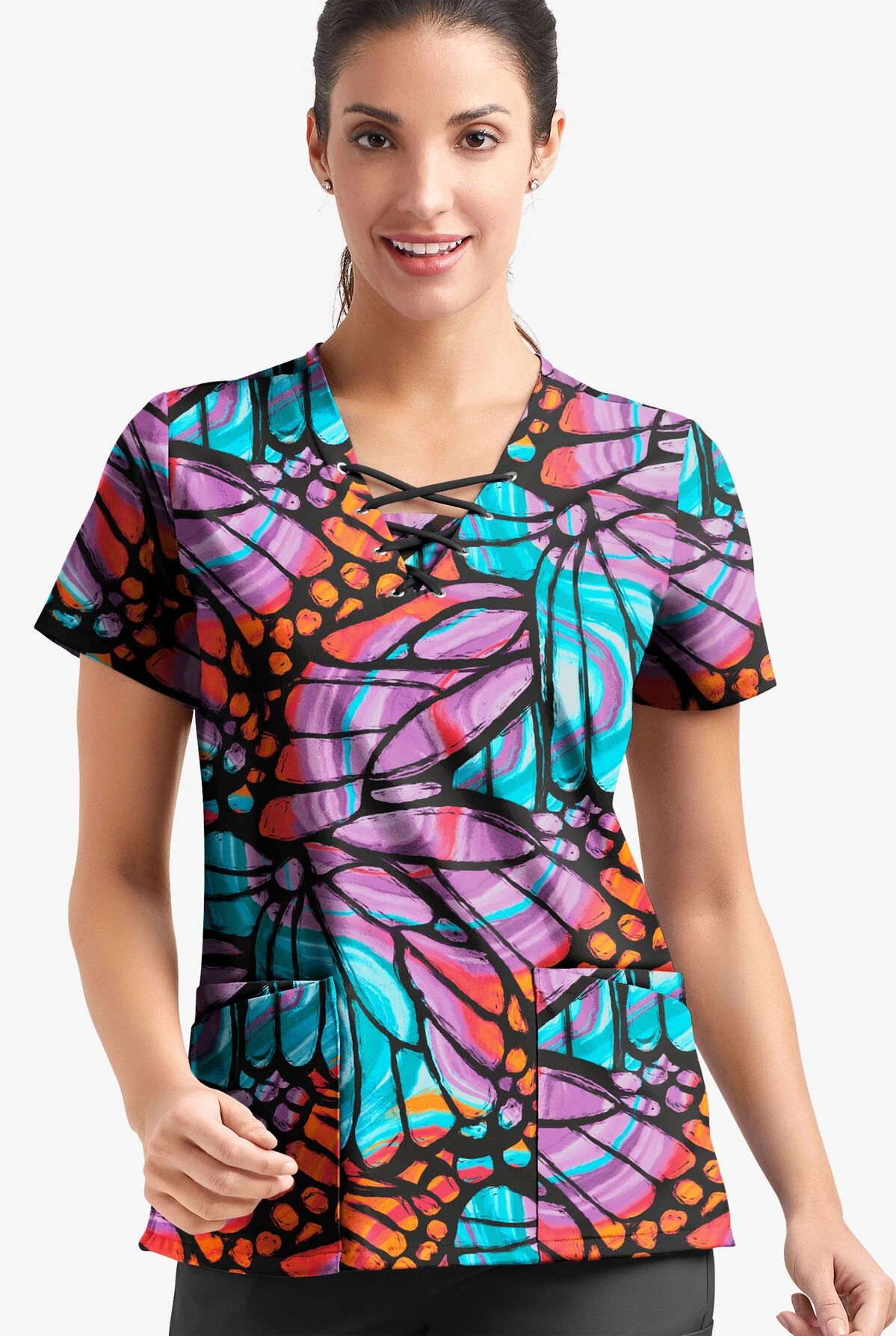 Bored by your current scrub top collection? Our lace-up V-neck style will break the monotony with its dynamic laced front (complete with modesty panel), modern fit and silky-soft feel.