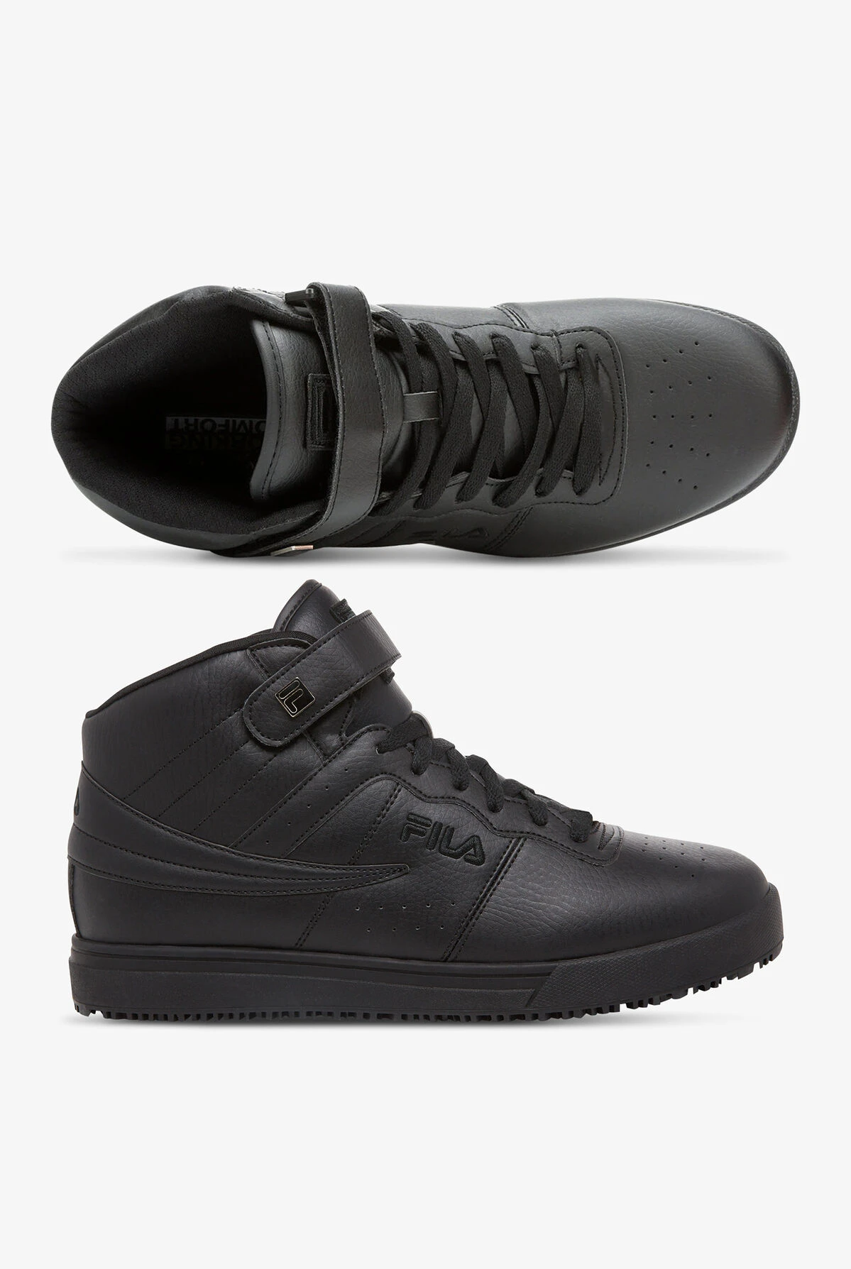 Fila Vulc 13 Black Hight Top Athletic Lace Up Shoes give you comfort that’s designed for work. Supportive high-top style is padded at the ankle for comfort. A memory foam insole and COOLMAX® insole lining keep feet feeling great. And the slip- and oil-resistant sole gives you an extra measure of security.