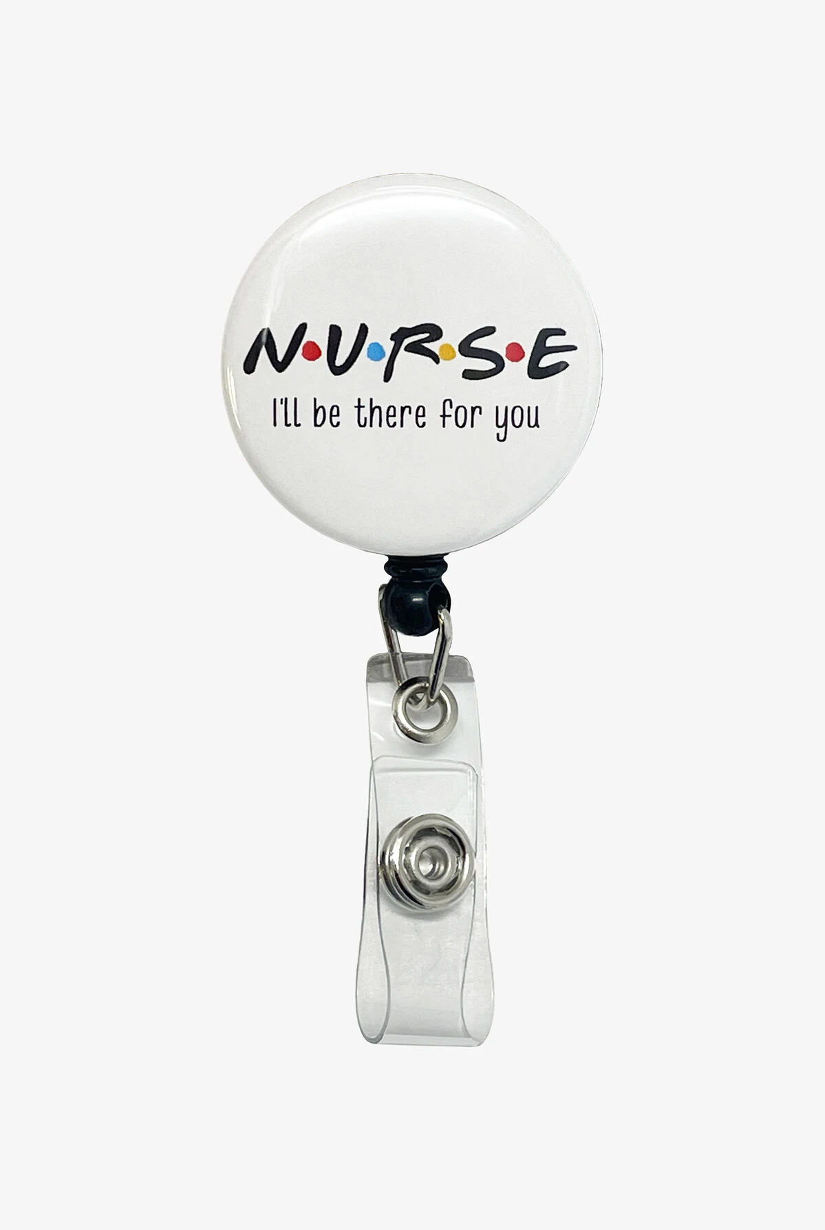 Hiddles Nurse I’ll Be There For You Retractable ID Badge Holder attaches securely to your uniform and the taut retractable cord lets you swipe your ID with ease.