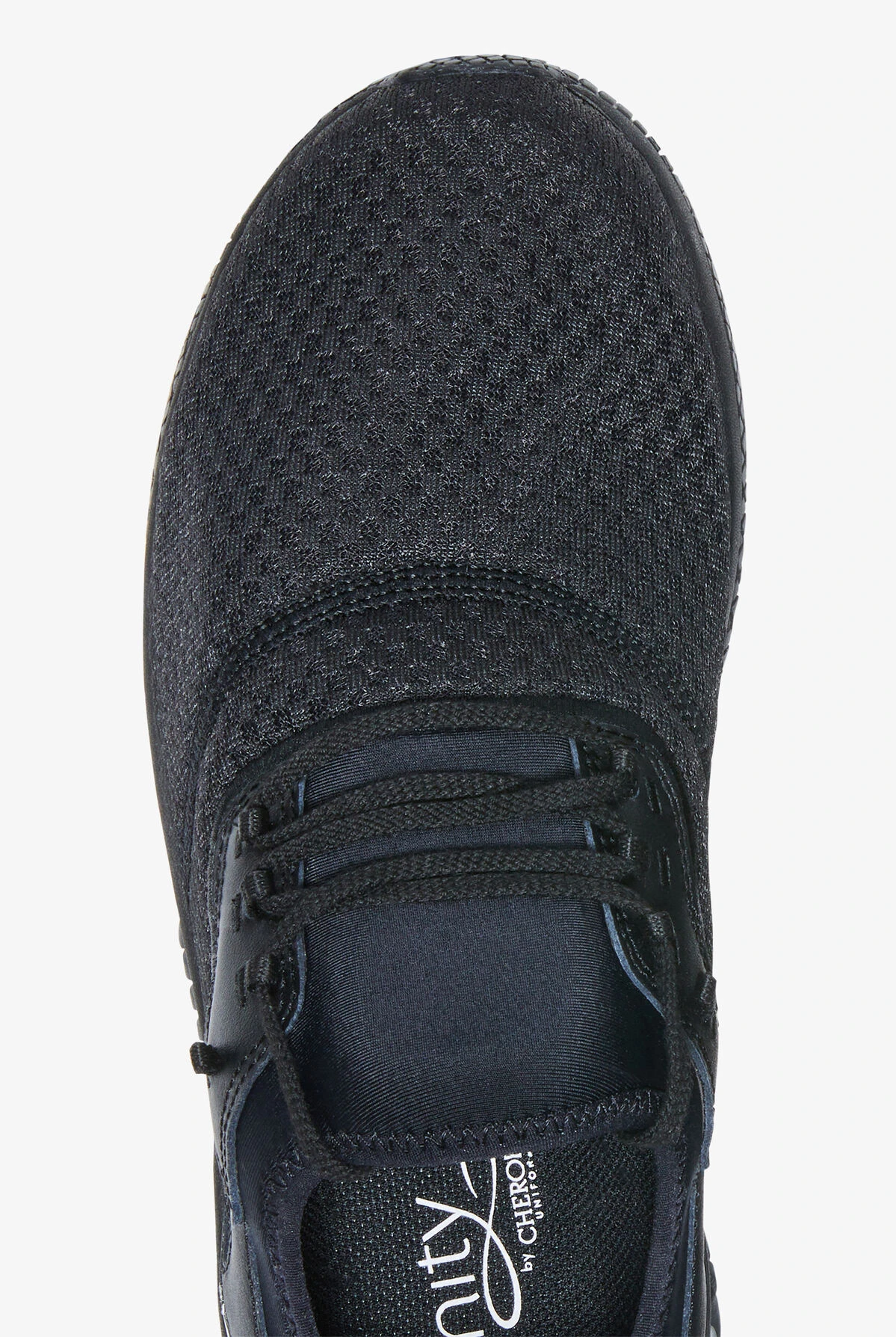 Infinity by Cherokee Dart Athletic Lace Up feature breathable mesh uppers in a pull-on bootie style with adjustable laces. The latex-free insole has built-in arch support and slides out if you prefer an orthotic. High-rebound EVA midsole plus a slip- and oil-resistant outsole.