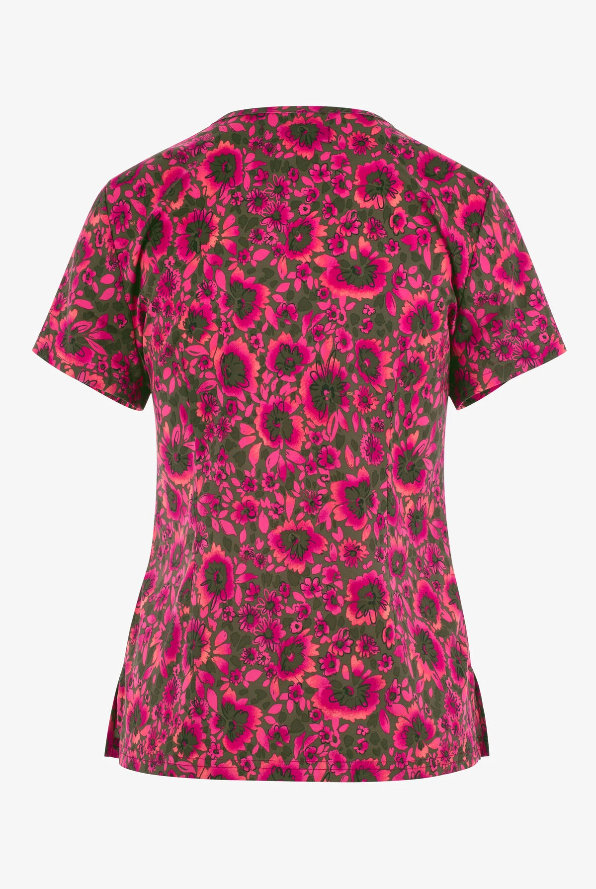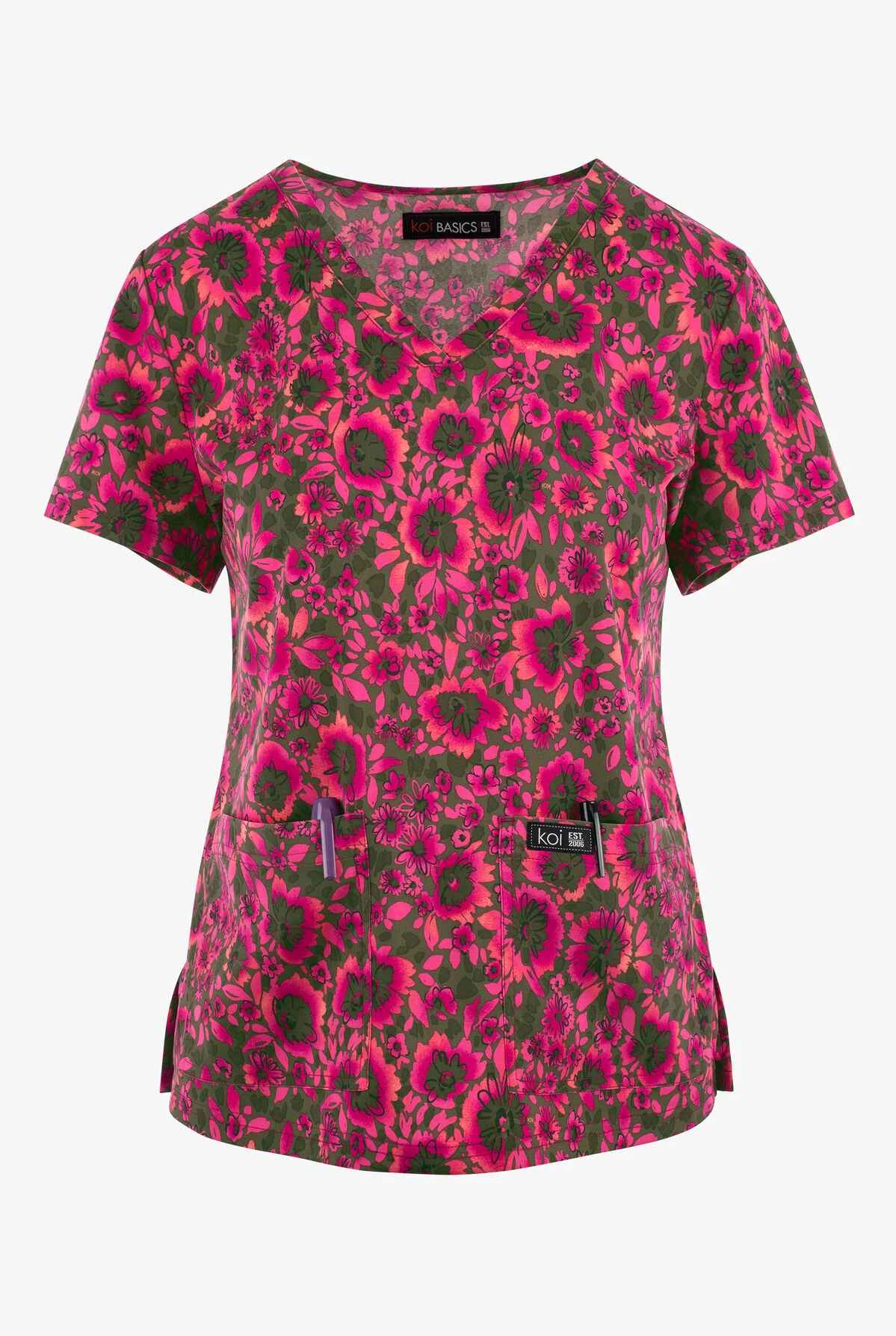 koi Basics Harvest Tapestry Floral Women’s 2-Pocket STRETCH V-Neck Print Scrub Top