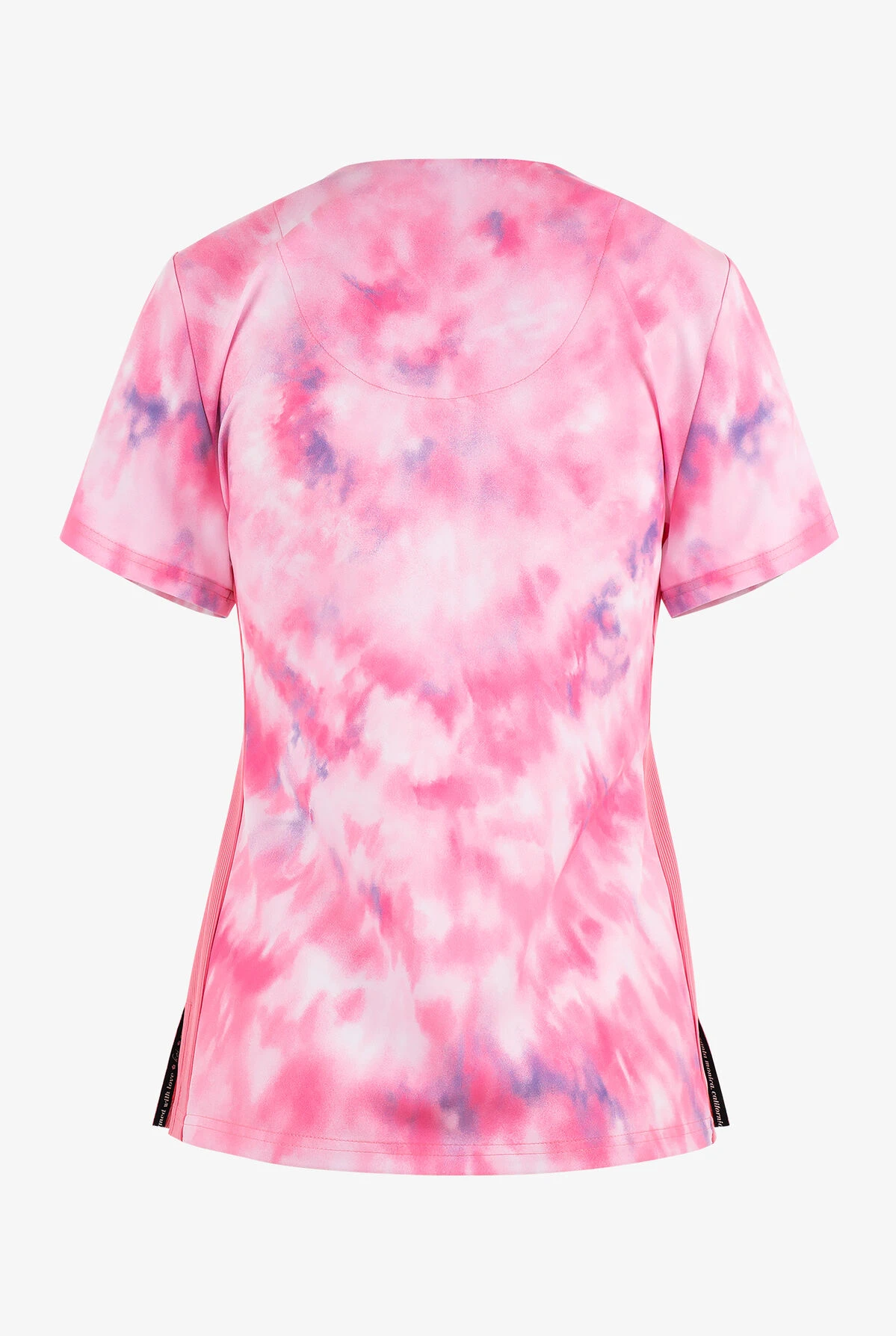 koi Lite Tie Dye Hearts Women’s 2-Pocket STRETCH V-Neck Print Scrub Top