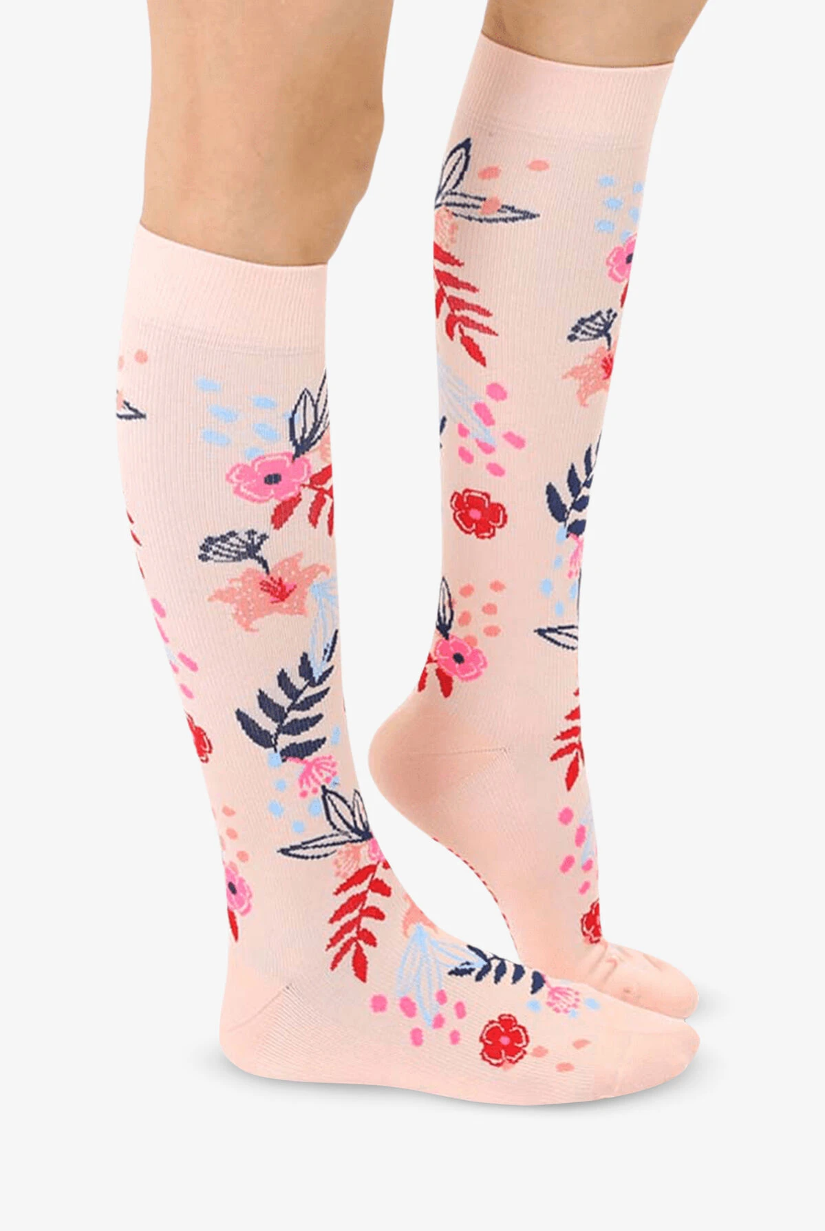 Moderate support with a light touch. The gradient compression of Living Royal Compression – 12CN Unisex Floral Compression Socks is greatest at the ankle, lessens gradually to the top. Cushioned sock bottom and invisible toe seam add comfort. Unisex. One size fits most.