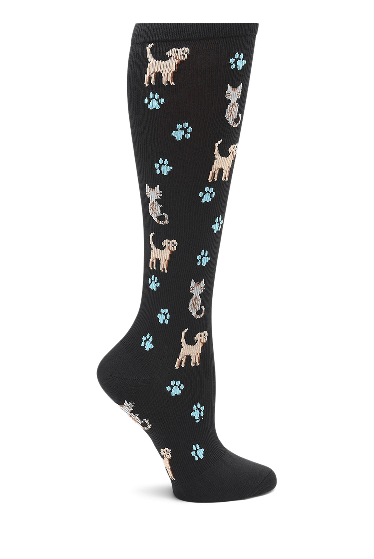 Treat your feet and legs to a little support. The light, gradient compression of Nurse Mates 883770 Pets ‘n Paws Compression Socks is designed to help energize and soothe. Compression is greatest at the ankle, lessens gradually to the non-binding top band. Colorful, long-lasting print. One size fits most.