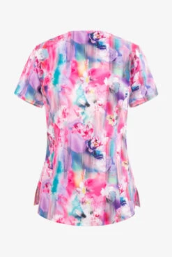 Barco One Floral Blooms Women’s 4-Pocket STRETCH V-Neck Print Scrub Top