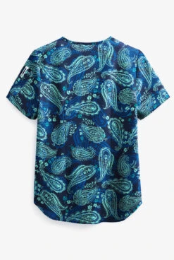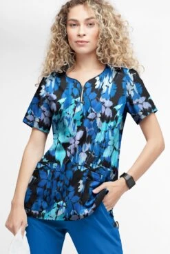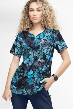 Easy STRETCH By Butter-Soft™ Magical Garden Navy Women’s 4-Pocket Lace Up V-Neck Printed Scrub Top