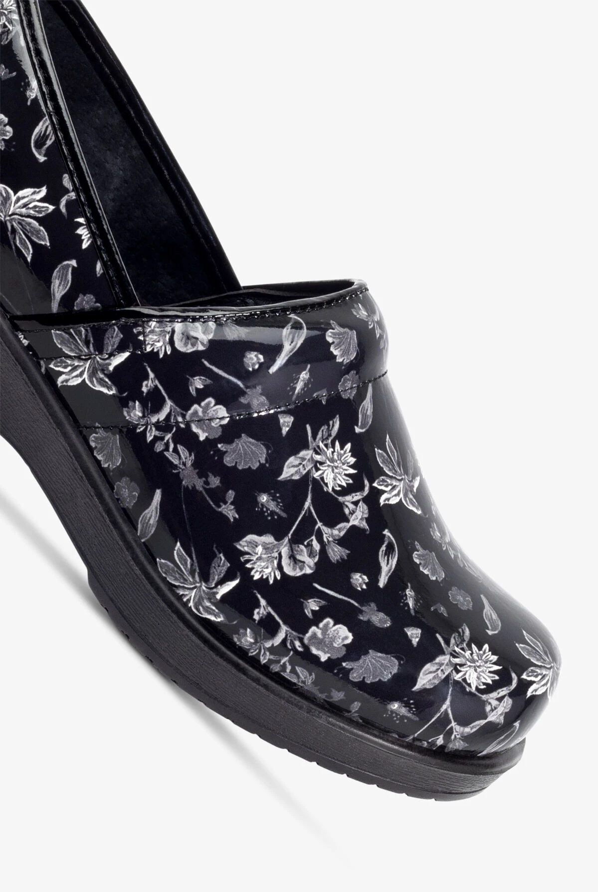 Savvy Women’s Brandy Silver Flower Nursing Clogs add an eye-catching pattern to your professional look. Savvy Brandy Patent Leather Nursing Clogs offer serious comfort without weighing you down. Synthetic uppers are easy to wipe clean. A memory foam insole and steel shank in the midsole give great cushion and support. And the outsole is slip resistant. High gloss black with silver tonal flowers.