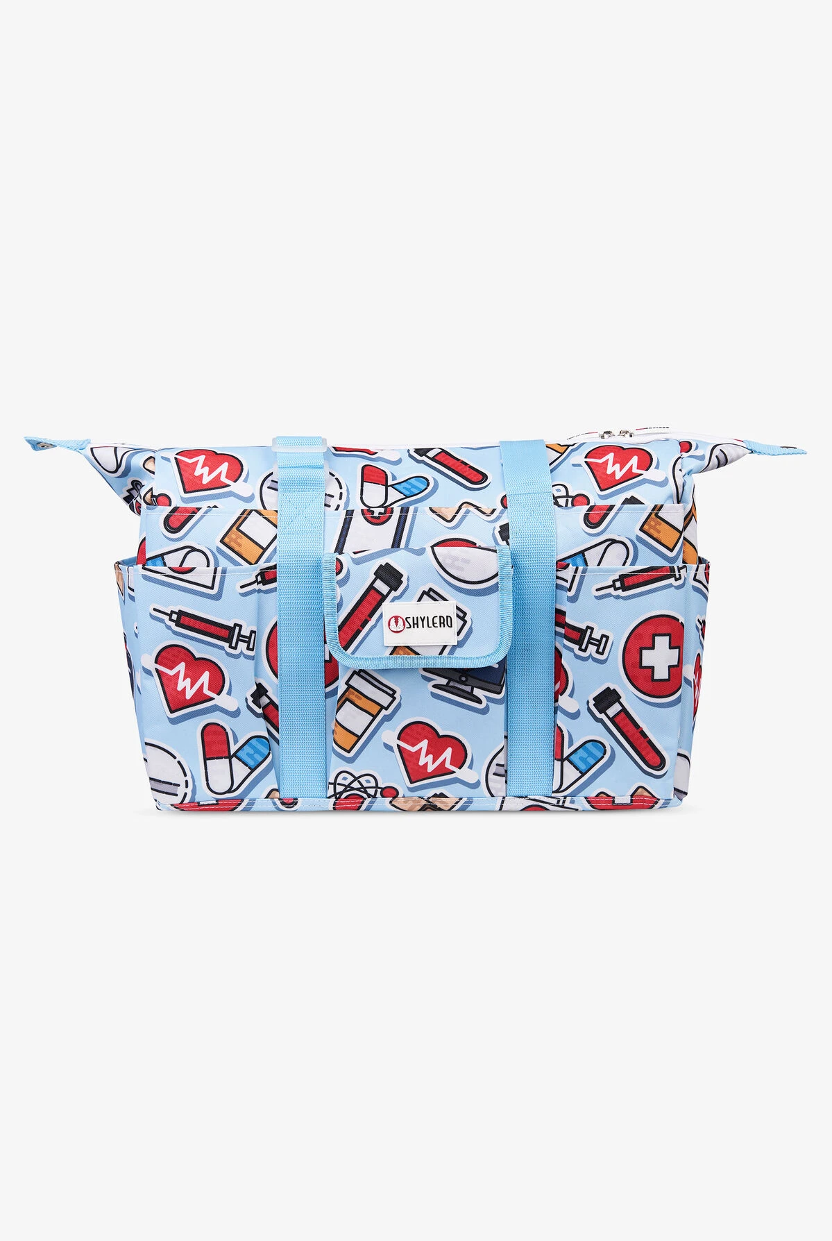 With so many pockets this Shylero Cure All all purpose bag is great for medical professionals, teachers, students, travelers, or anyone that needs a versatile organizing tote. Fabricated with waterproof, durable , washable material and high quality paint that won’t wash away, this bag dries quickly, keep its shape and will stay looking good for a long time to come.