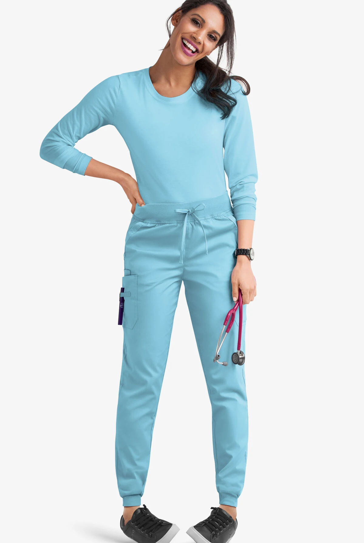 Joggers are the next-best thing to wearing your favorite sweats to work. Our drawstring scrub pants have cargo pockets for maximum storage and a wide knit waistband that is as comfy as it is flattering. Each piece in our Butter-soft Stretch scrub collection was designed for 12+ hour shifts, and made from easy-care, 2-way stretch comfort fabric.