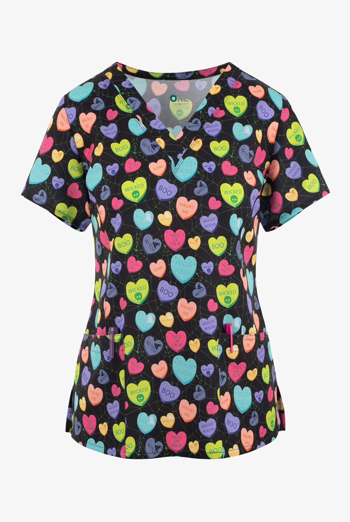 UA Exclusive Maevn My Boo Hearts Women’s 3-Pocket STRETCH V-Neck Print Scrub Top