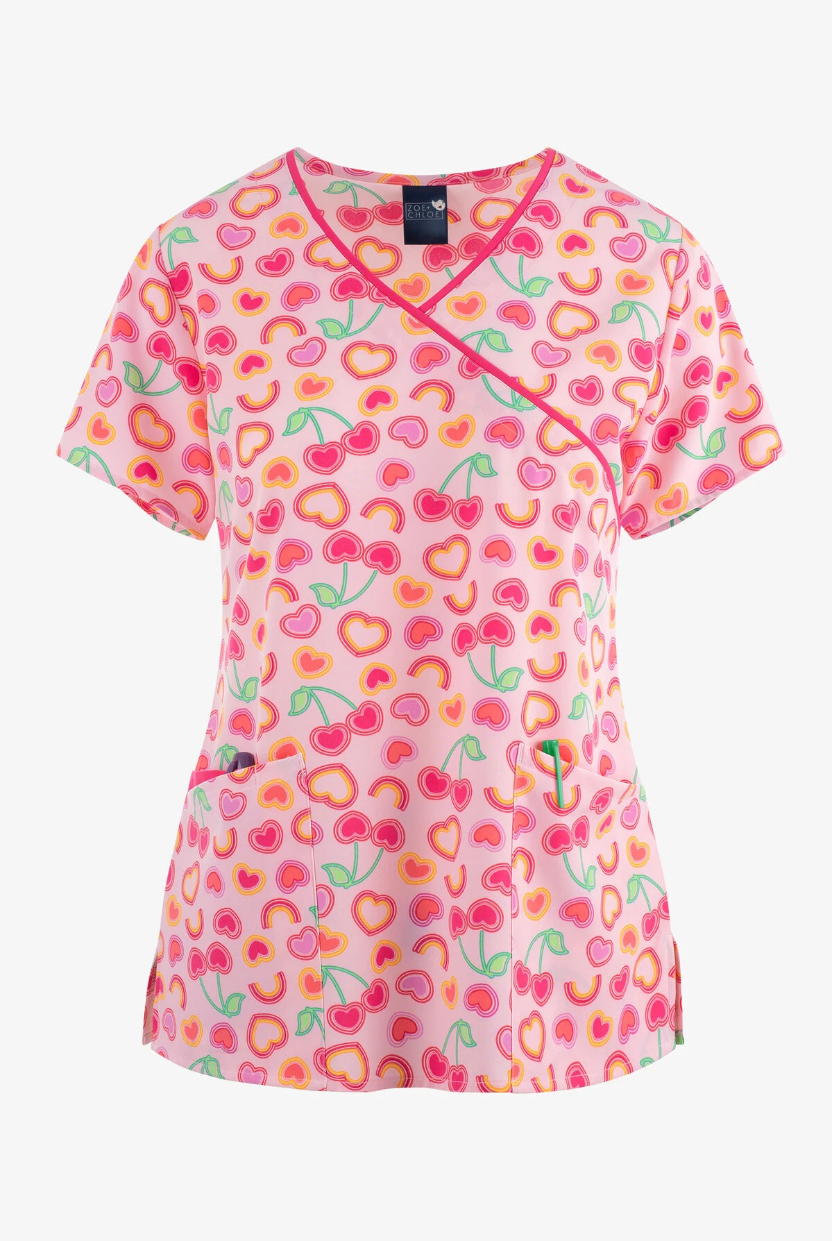 - Hearts, rainbows and cherries in this pink-a-licious print with a Rose Blush background
