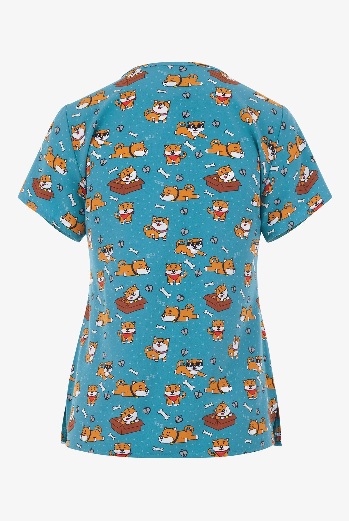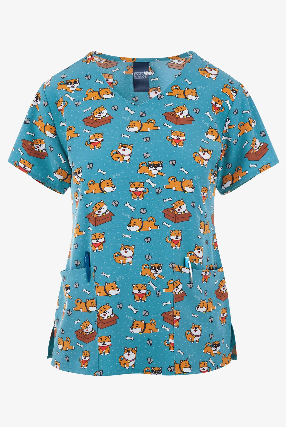 - Sweet Shiba Inu’s on a bone, dog tagged and polka dotted aqua background